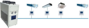 • هزینه پیاده‌سازی: هزینه این سیستم شامل خرید چیلر، فن‌کویل‌ها و اجرای لوله‌کشی است. در چیلرهای کوچک، پمپ و منبع انبساط به‌صورت یکپارچه در دستگاه تعبیه شده‌اند.