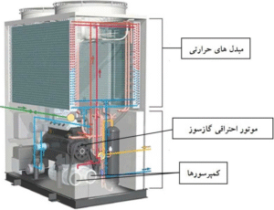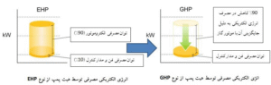 - در مقابل، در سیستم GHP یا پمپ حرارتی گازسوز، این وظیفه بر عهده یک موتور احتراق داخلی است که با سوخت گاز (مانند گاز طبیعی) کار میکند.